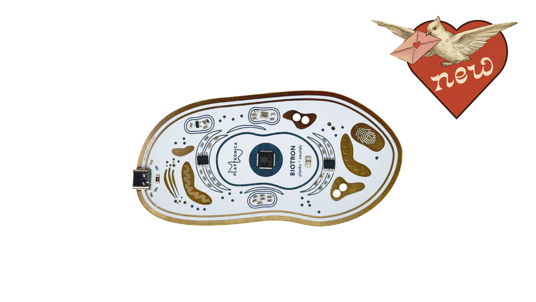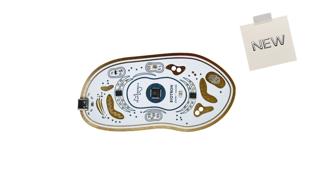 Connect a plant, let it play music by itself or responding to your moves. Experience nature's harmonies without touching the plant.