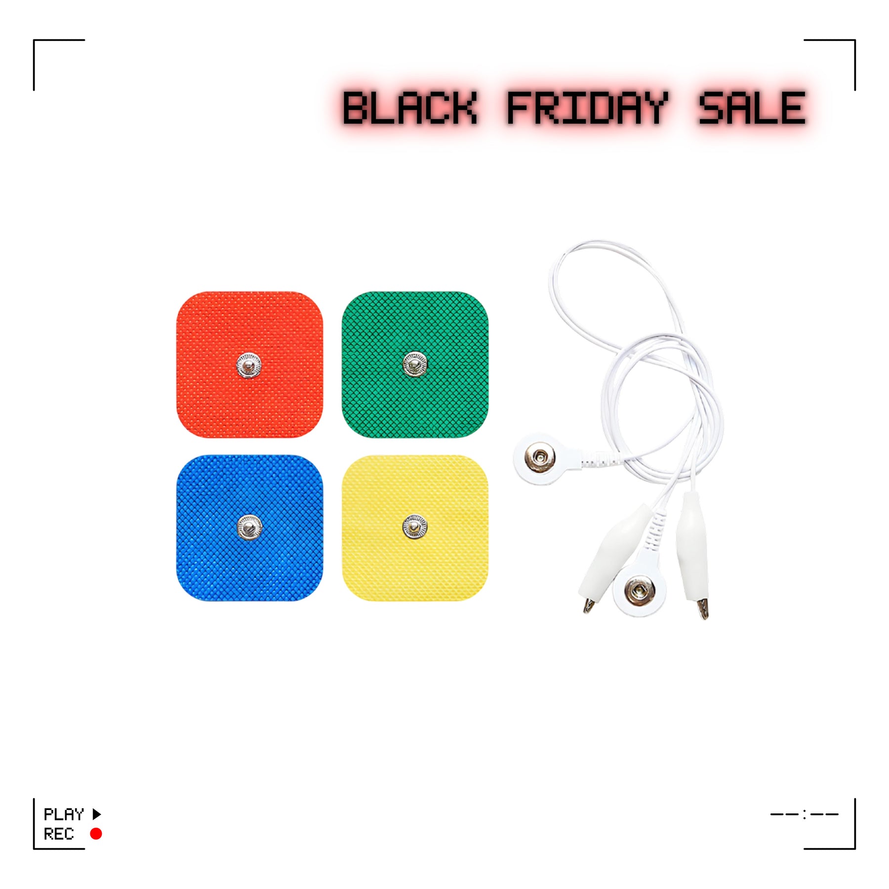 Patches are designed for sensitive skin and provide mild adhesion without compromising conductivity. They come with connectors that end with alligator clips.